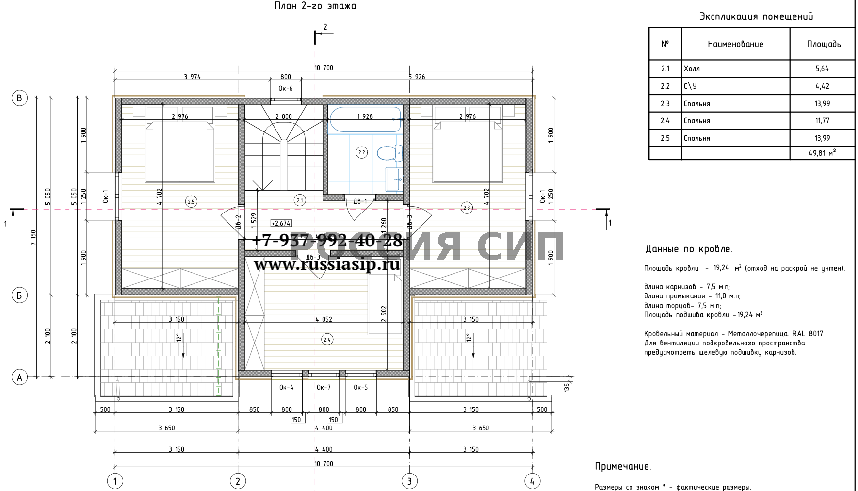 2 ЭТАЖ: холл 5,64м2, с/у2 4,42м2, спальня2 13,99м2, спальня3 11,77м2, спальня4 13,99м2