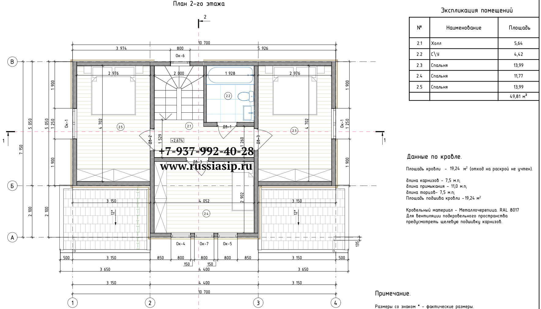 2 ЭТАЖ: холл 5,64м2, с/у2 4,42м2, спальня2 13,99м2, спальня3 11,77м2, спальня4 13,99м2