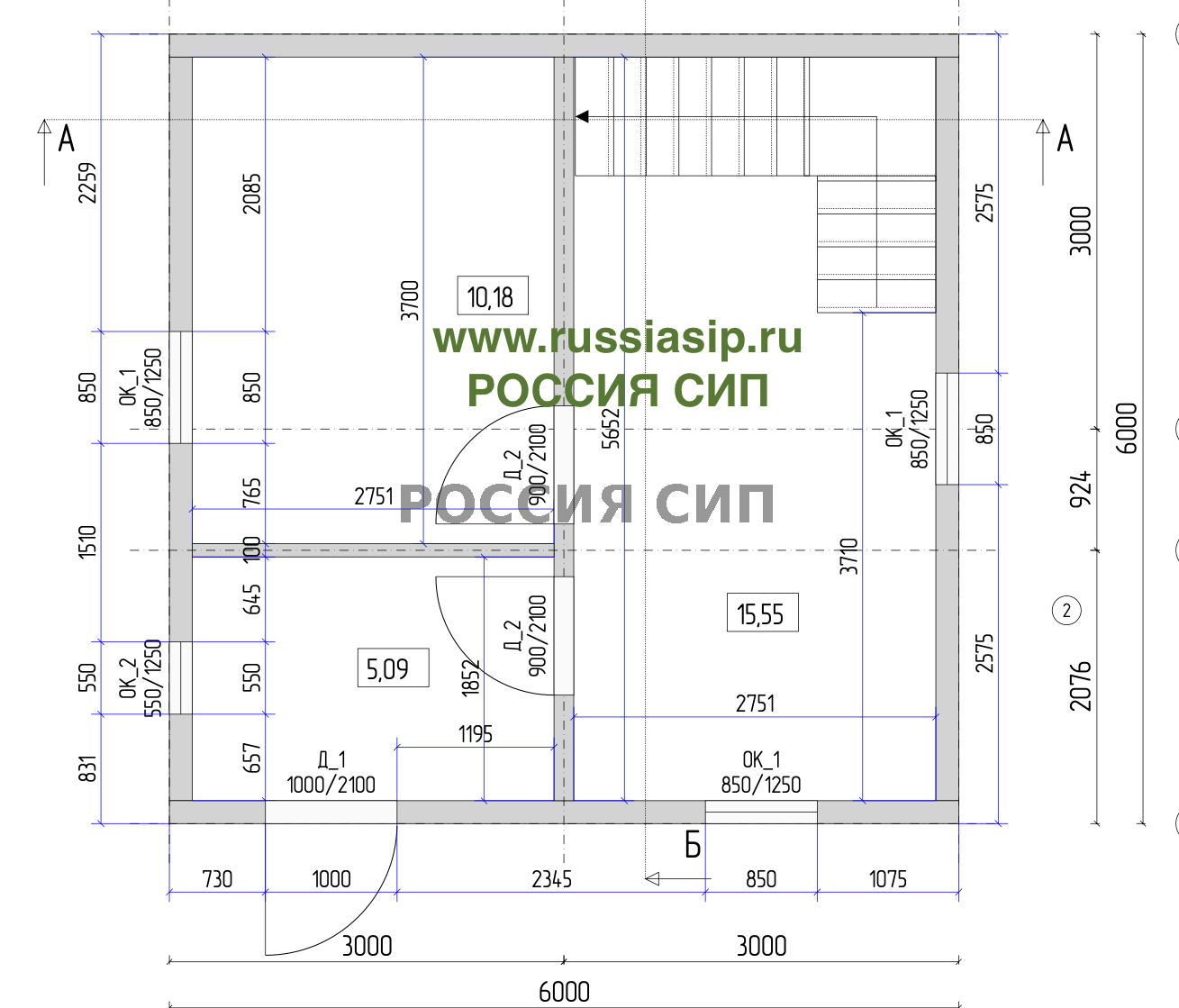 1 ЭТАЖ: холл 15.55м2, кухня 10.18м2, прихожая 5.09м2.