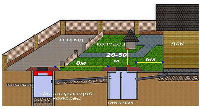 в 8 метрах от фильтрующего колодца.
