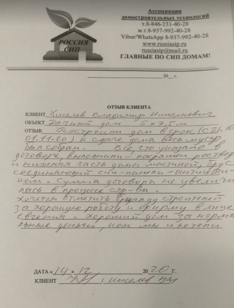 Очередной отзыв нашего Клиента. Г. Самара. Отличная работа!