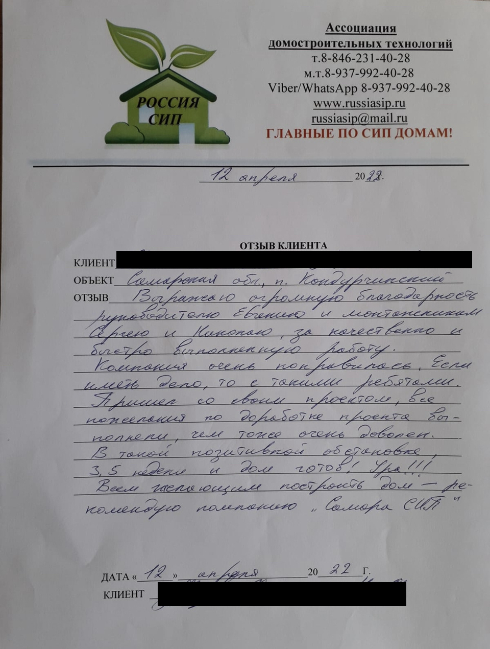 ОТЗЫВ О НАШЕЙ РАБОТЕ.
