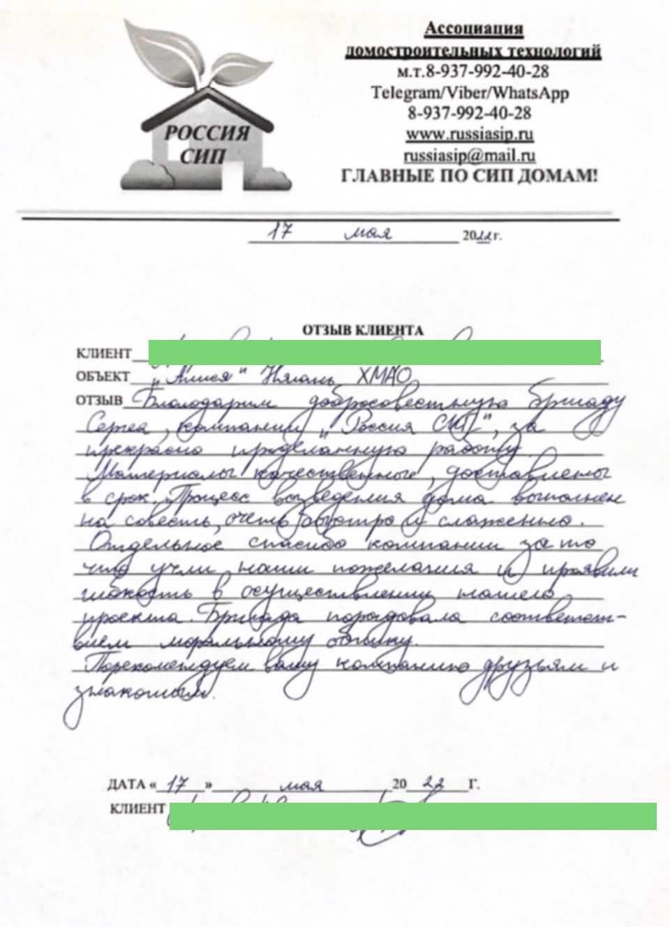 ОТЗЫВ О НАШЕЙ РАБОТЕ.