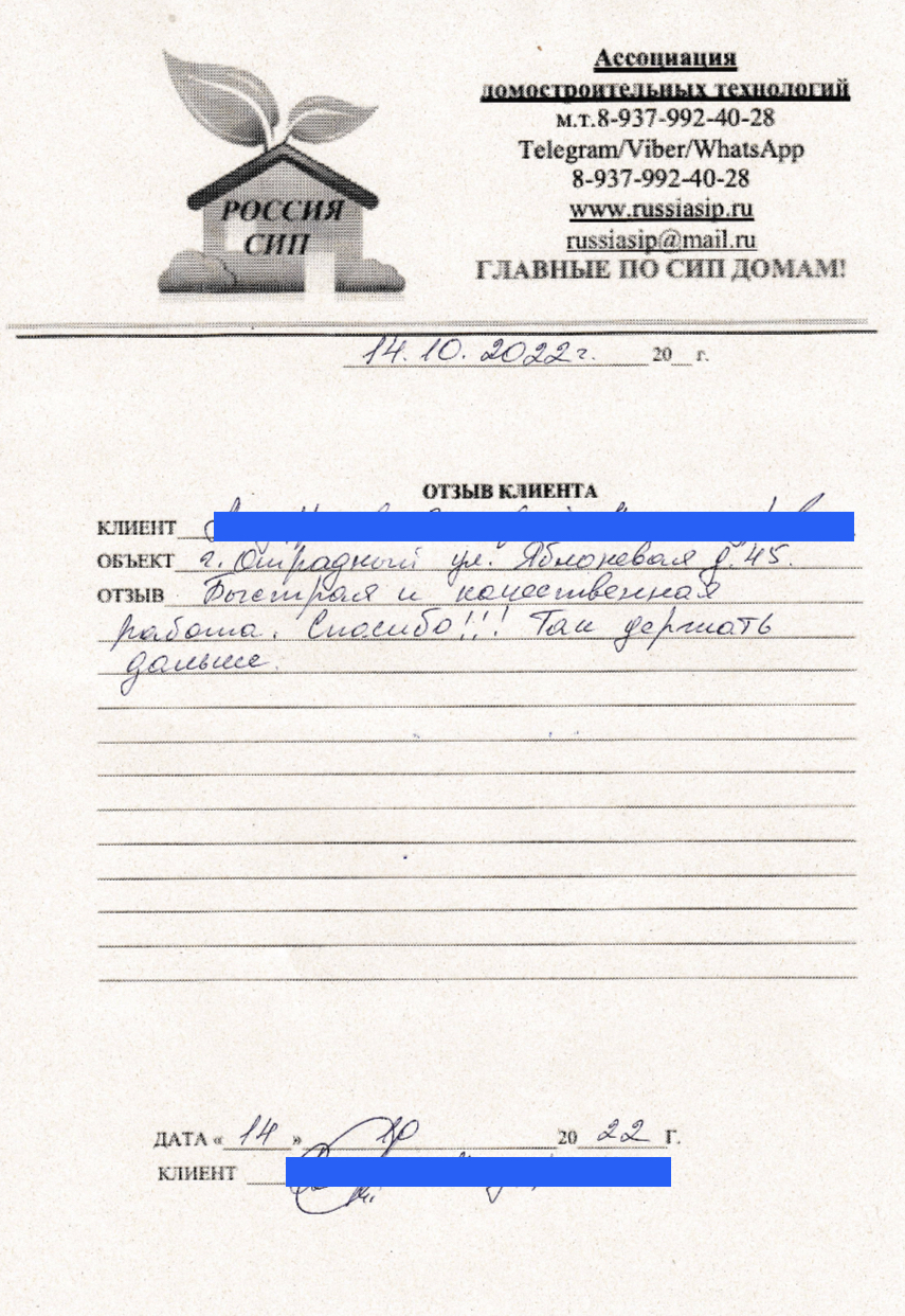 ОТЗЫВ О НАШЕЙ РАБОТЕ.