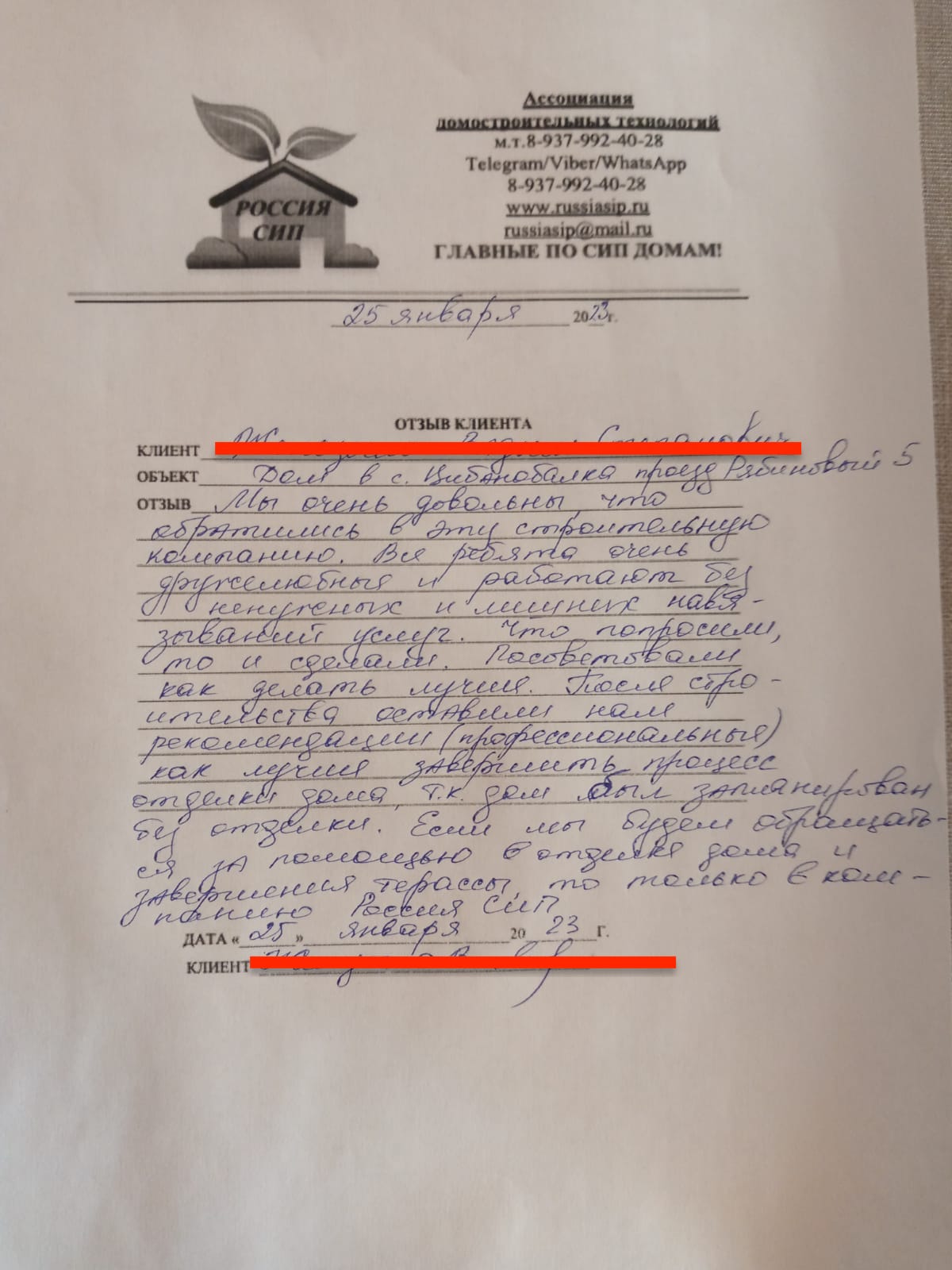 ОТЗЫВ О НАШЕЙ РАБОТЕ