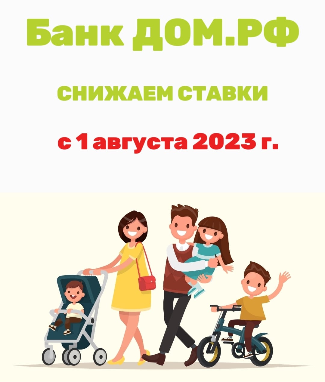 ДОМ.РФ снижает ставки по всем заявкам, поданным банк с 1 августа 2023 г.