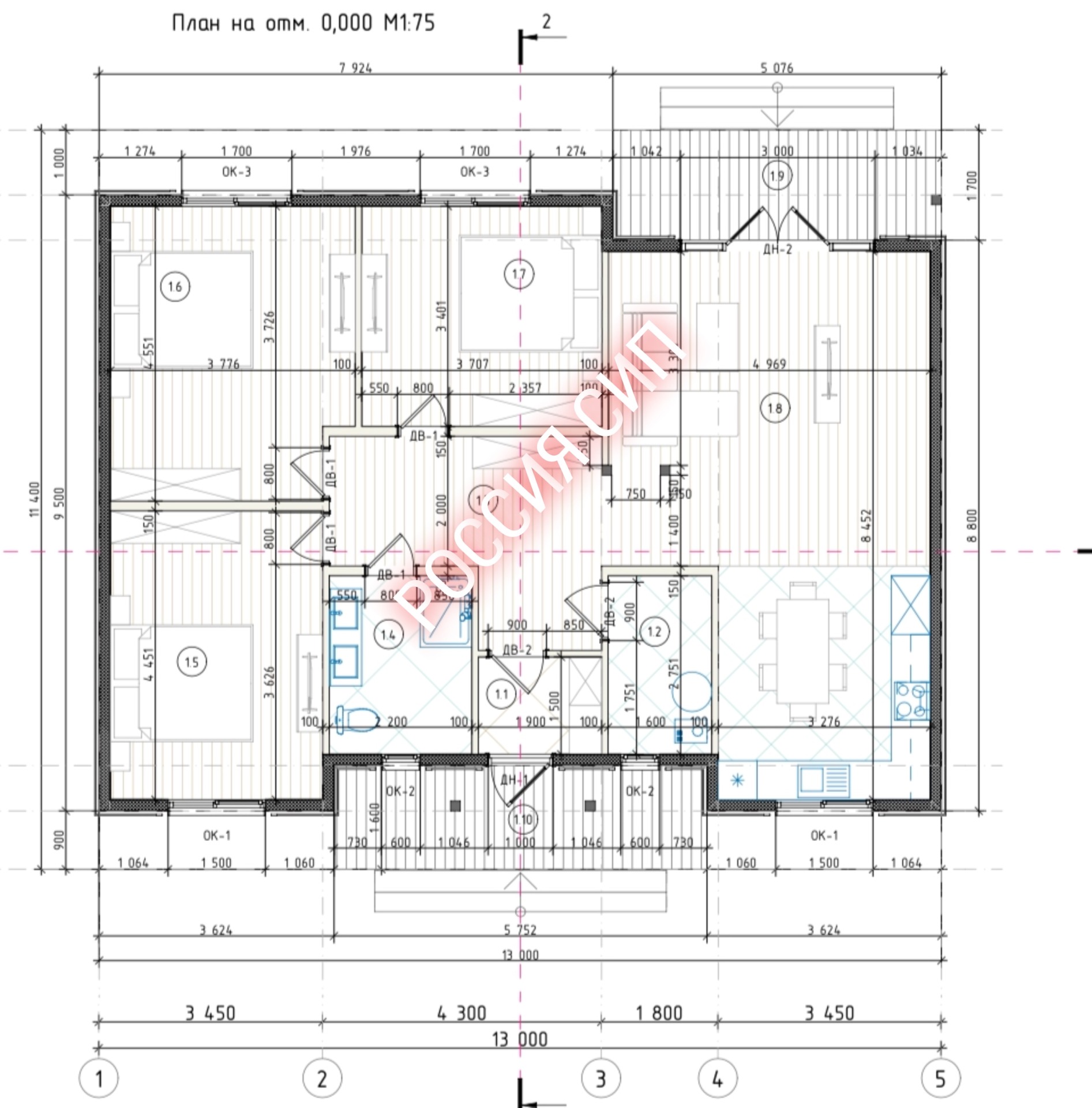 Тамбур 2,85м2, бойлерная 4,4м2, холл 10.9м2, с/у 6,05м2, спальня1 14,58м2, спальня2 16,61м2, спальня3 12,61м2, кухня-гостиная 36,03м2, крыльцо 8,63м2, крыльцо 9.2м2.