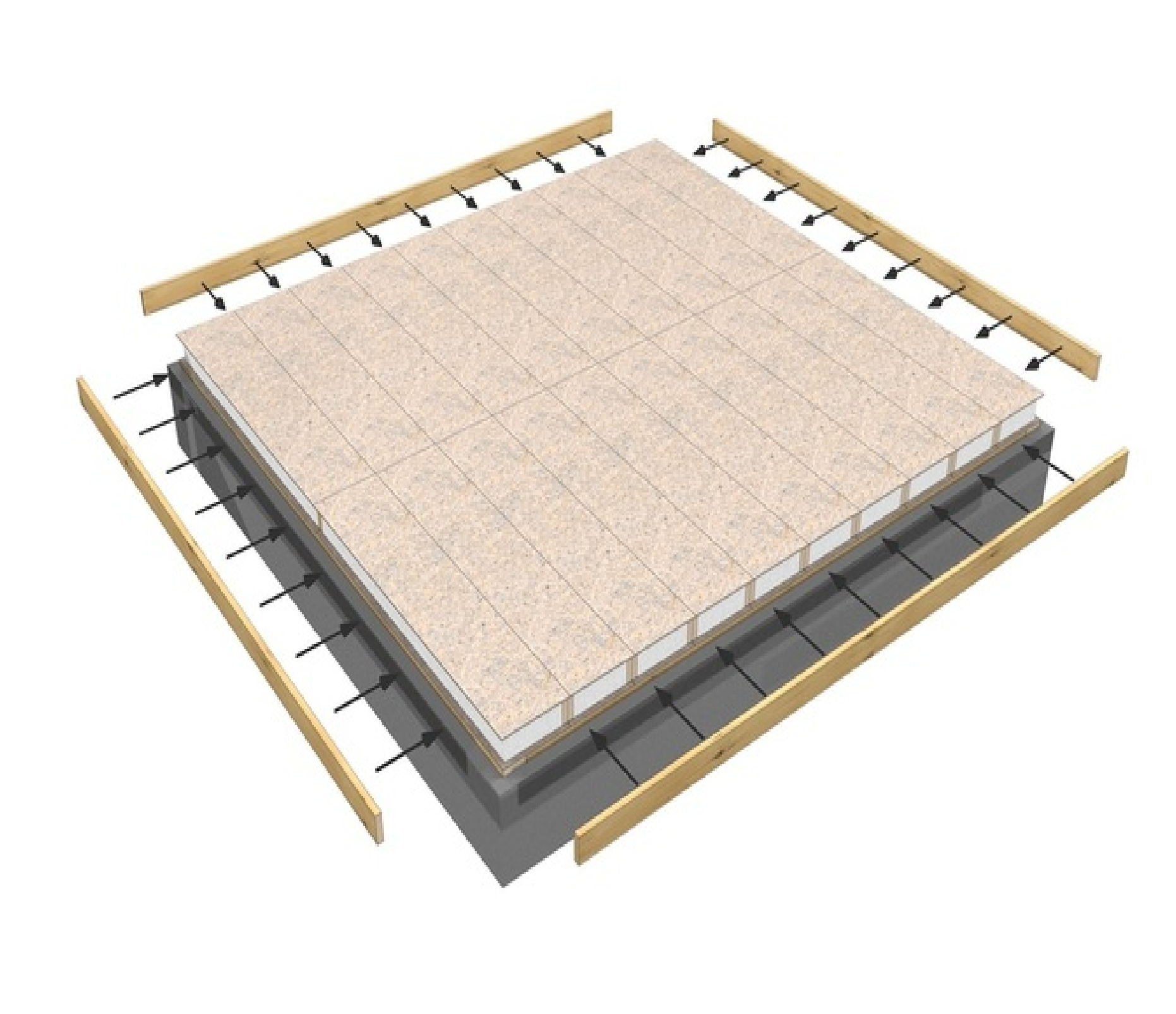 После завершения сборки перекрытия его торец, по периметру дома, защищается торцевой доской. Для улучшения гидроизолирующего свойства, плиты перекрытия покрываются снизу слоем битумной мастики.