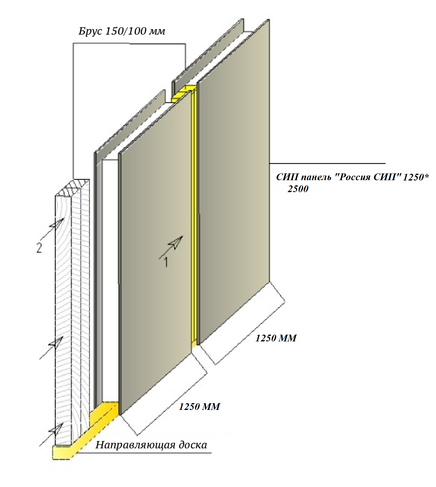 Соединение панелей должно происходить через брус сечением 100*150 мм.(!)